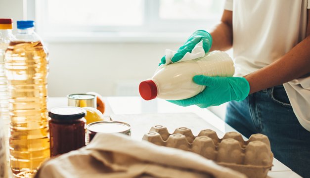 - Recipientes y paquetes de comida. No hay evidencia que nadie se haya contagiado con el virus que causa la COVID-19 al tocar recipientes de comida y paquetes de alimentos. Muchos restaurantes ahora ofrecen comida para llevar y entregas sin contacto para reducir el riesgo de contagio.Pero si todavía te preocupas, es razonable seguir pautas generales para la seguridad de la comida. Lávate las manos por lo menos por 20 segundos con agua y jabón después de tocar recipientes de comida para llevar, y luego pasa la comida a un plato limpio usando utensilios limpios. Vuelve a lavarte las manos antes de comer. Después de descartar los recipientes, limpia y desinfecta cualquier superficie que haya estado en contacto con ellos.